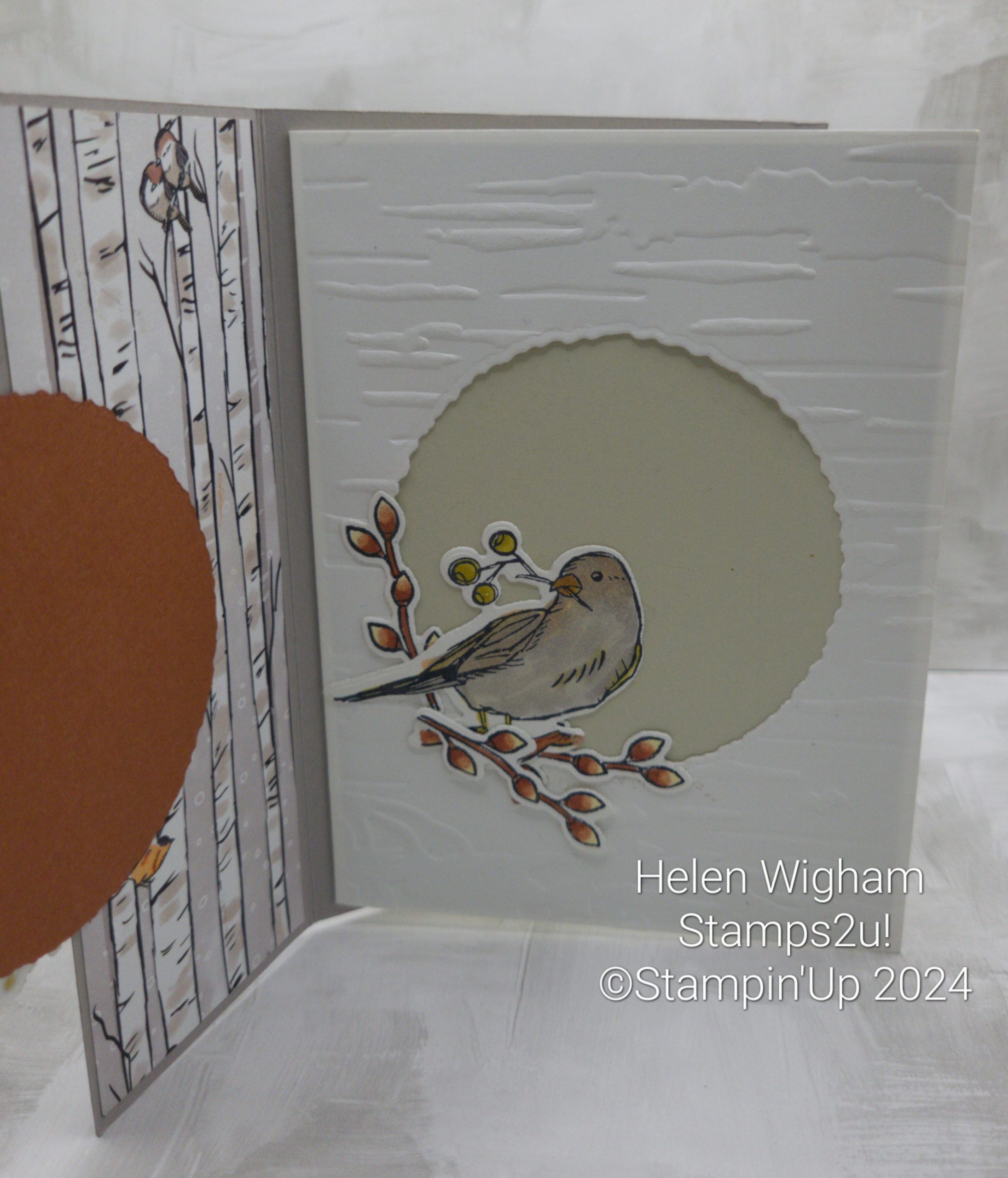 The Nests of Winter Suite became a firm favourite as soon as I saw it. I love the earthy tones of the DSP and those linen threads are just gorgeous. As I designed this card my intention was to create a window to look through to see the bird but as it came together my plan changed to use a sentiment on the front. The deckled circles could be substituted for any layering circles that you may have in your collection. Enjoy!